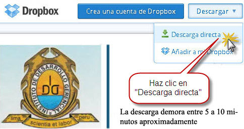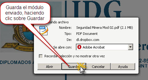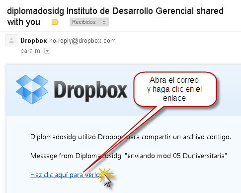 Ingresarás a Dropbox y descargarás el módulo enviado: